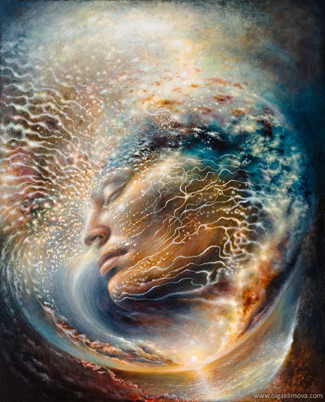 Olga Klimova is a self-taught visionary artist whose creative process serves as a catalyst for personal transformation and social change. She translates her meditative insight into a visual narrative, exploring both light and dark sides of life, existentialism, dualism and unity, juxtaposed with fragile beauty. She often shows close links between internal and external worlds, bringing attention to the necessity to explore both. Olga utilizes complex layered techniques in showing multi-dimensional structures of mind and matter.